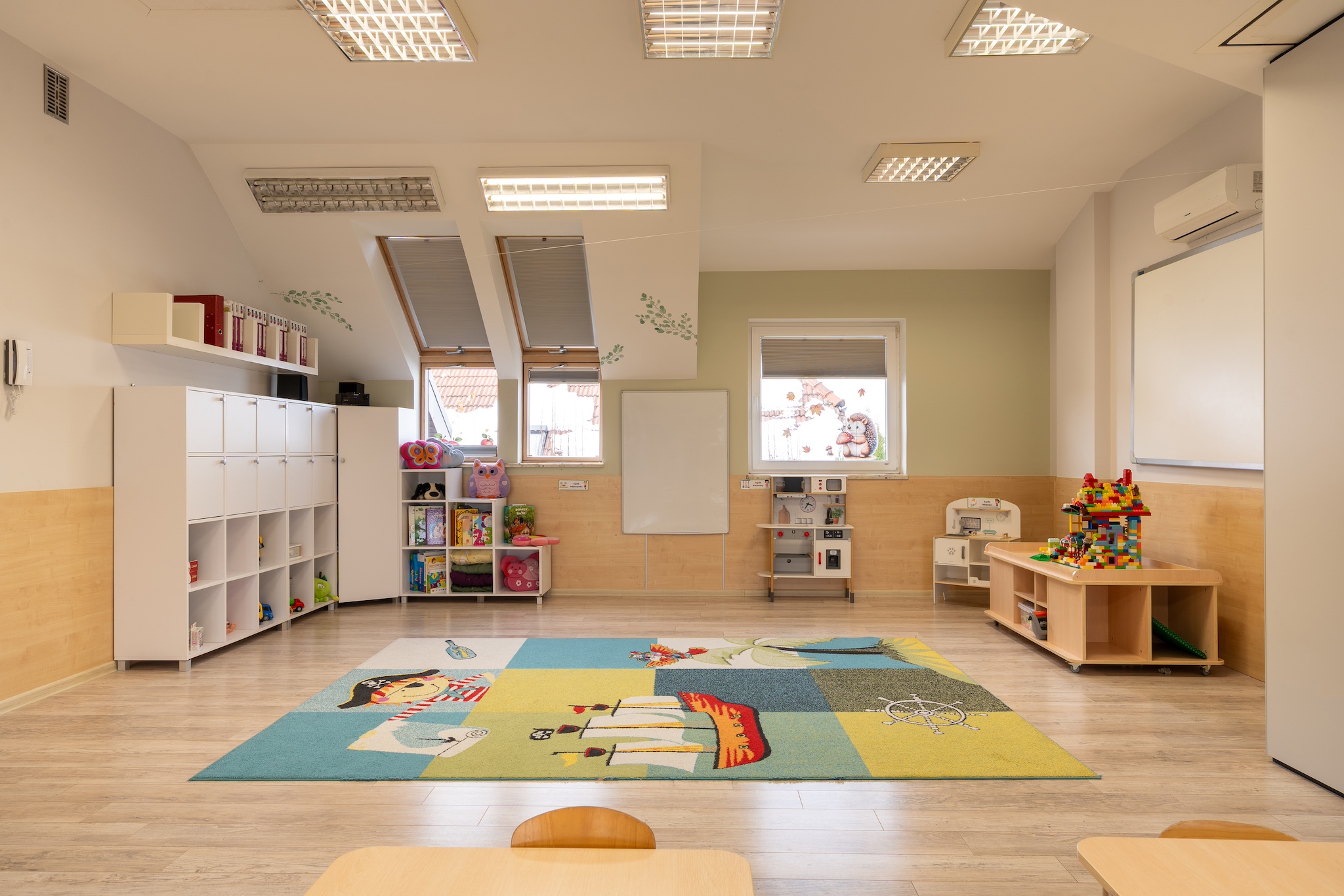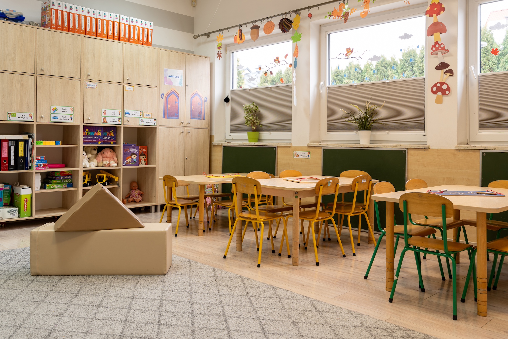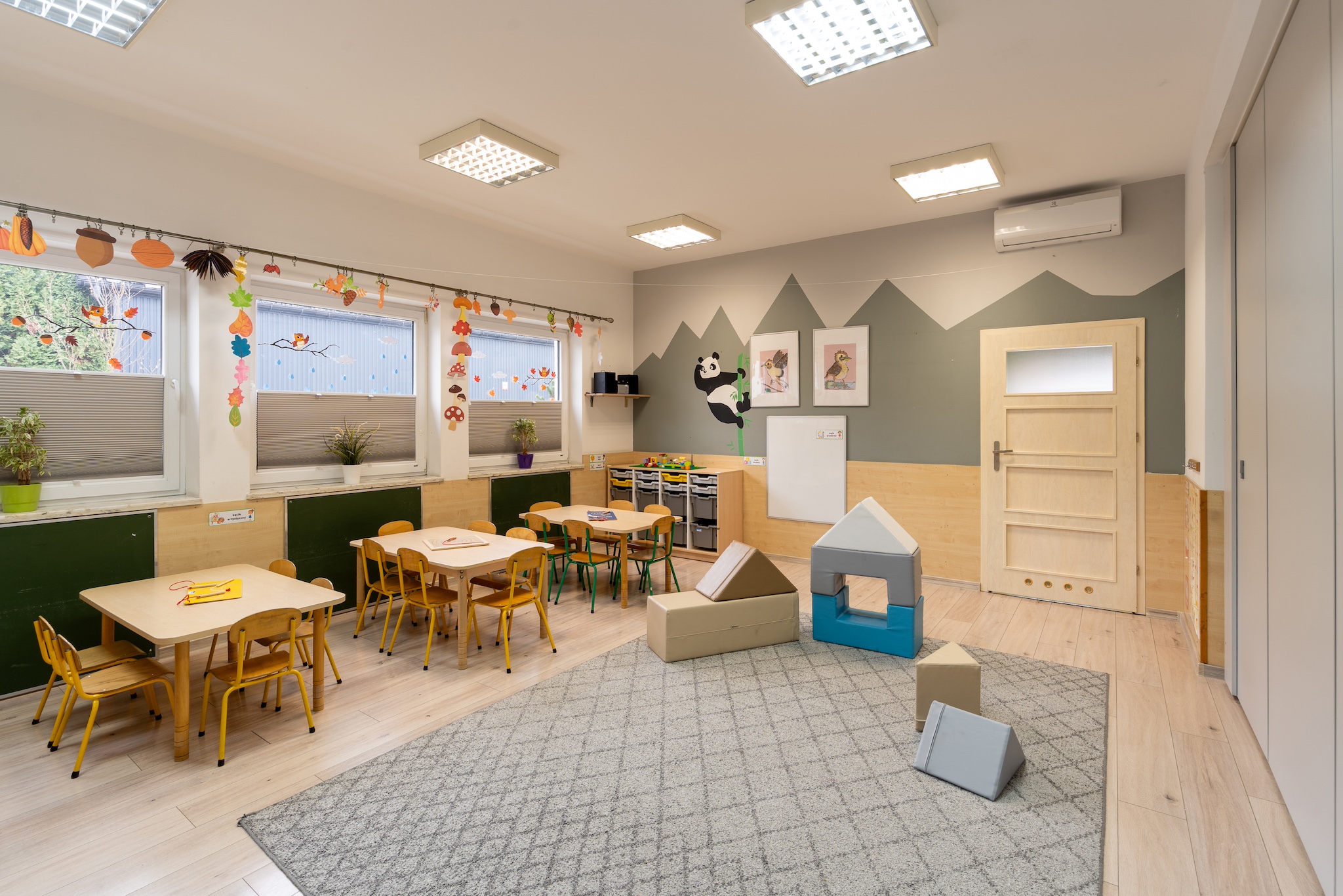 - Przyjazna atmosfera wspierająca zaangażowanie dzieci, wnętrza przedszkola przystosowane dla dzieci wysokowrażliwych (kolory, dźwięki itp.)