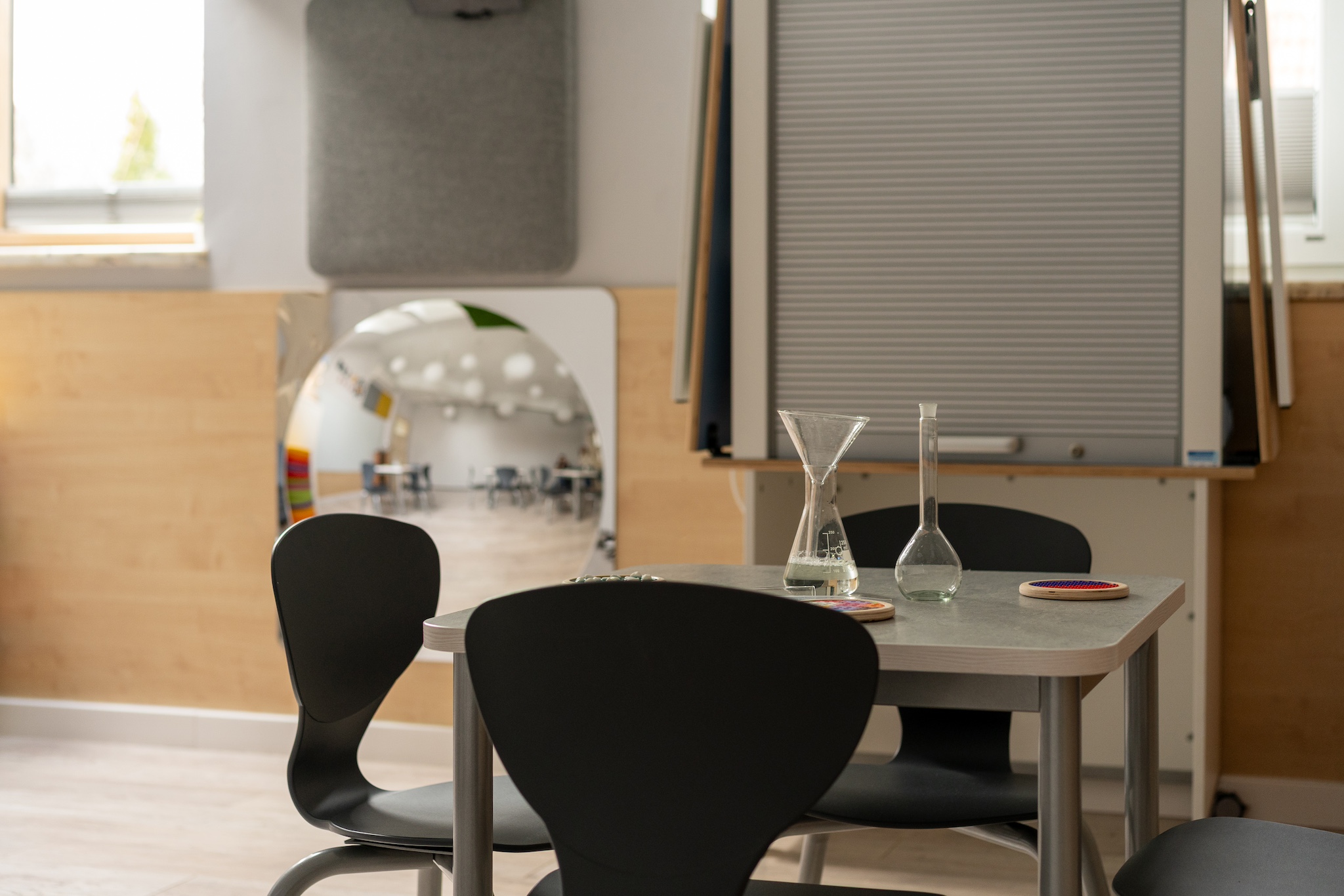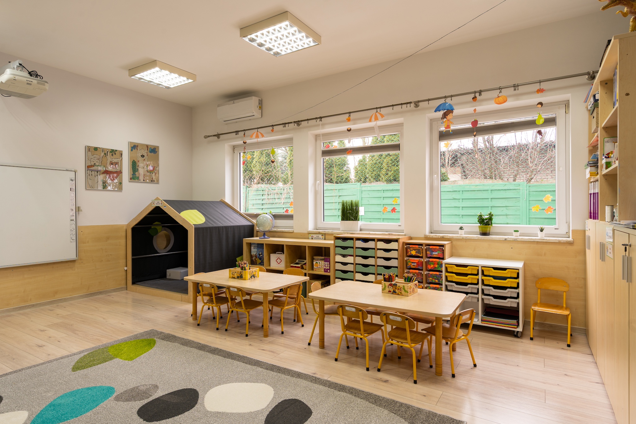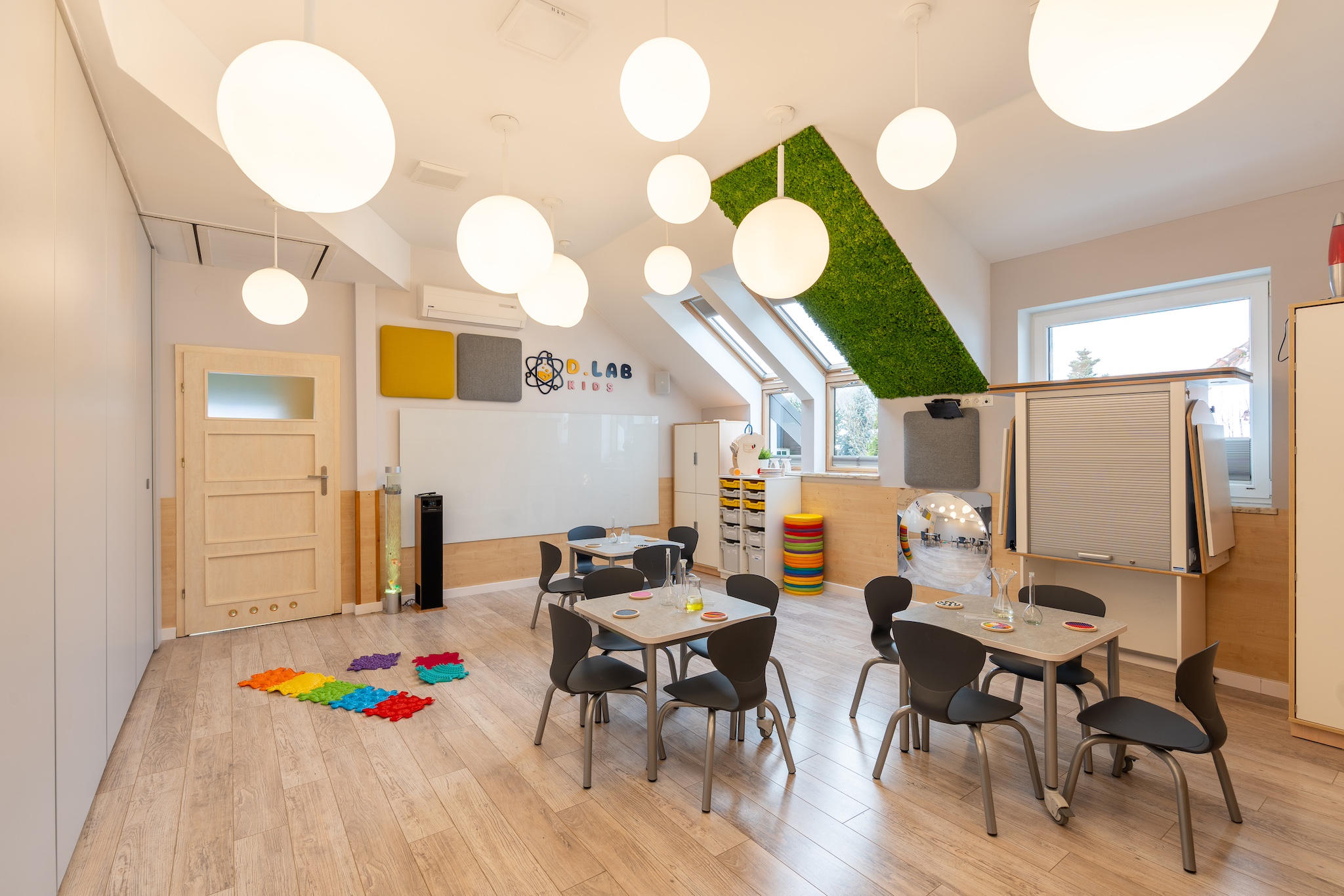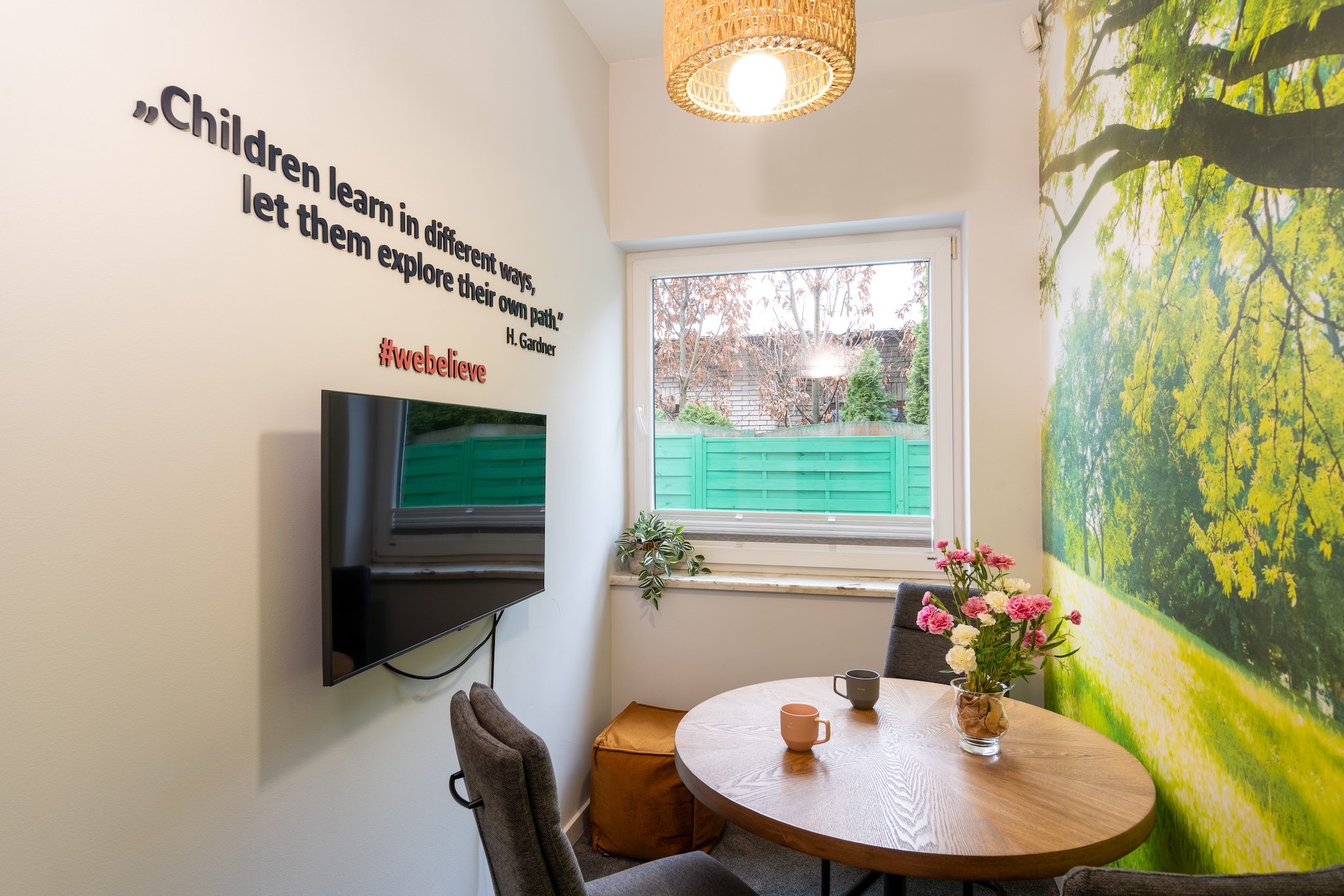 - Przyjazna atmosfera wspierająca zaangażowanie dzieci, wnętrza przedszkola przystosowane dla dzieci wysokowrażliwych (kolory, dźwięki itp.)