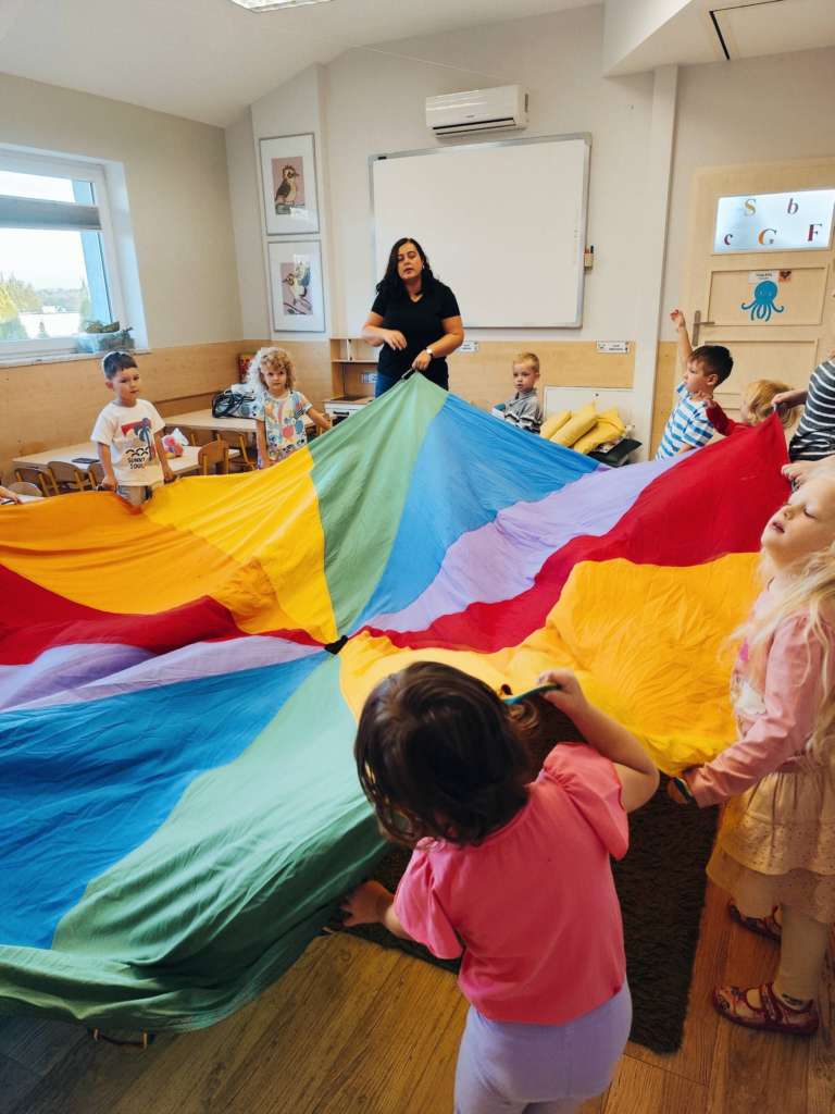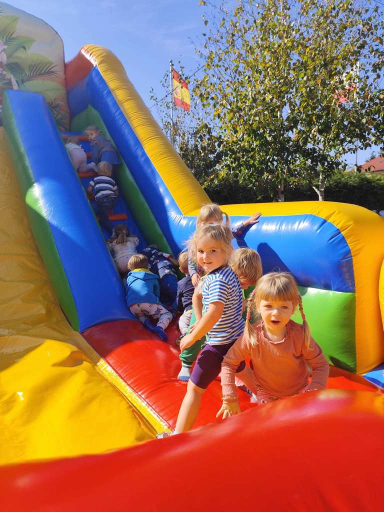 Przez cały dzień na placu zabaw znajdował się dmuchaniec, z którego mogła skorzystać każda z grup. Dzieci były przeszczęśliwe i pokazały ile mają w sobie pozytywnej energii!