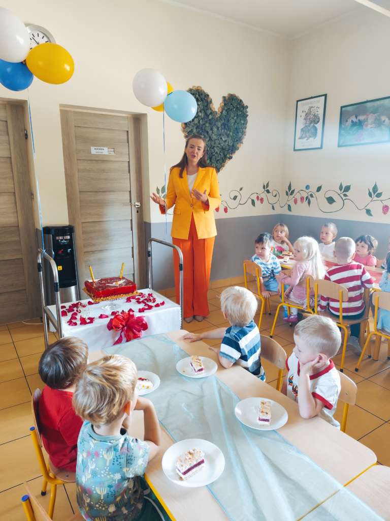 Na drugie śniadanie został podany piękny tort, a Przedszkolaki wyśpiewały sto lat dla LENKOWA! Dyrektor Generalna Pani Wioletta Kolber oraz Dyrekcja Przedszkola Pani Justyna Kryjak-Kadela złożyły wszystkim piękne życzenia.