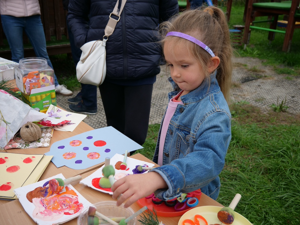 Dziękujemy za wspólne rozmowy, za każdy uśmiech, za branie udziału w naszych zabawach muzycznych i sportowych, za stworzenie kreatywnych cudowności na naszym stanowisku artystycznym – to było cudowne popołudnie.